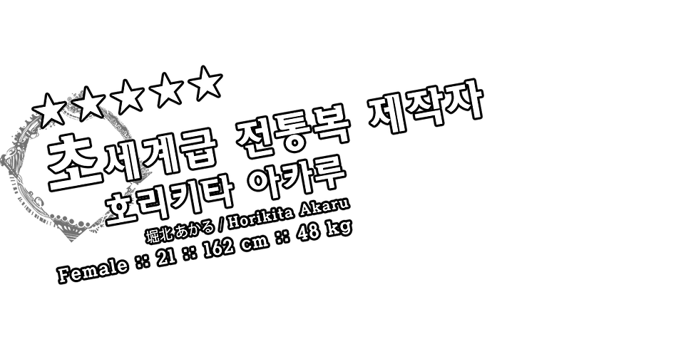 ▶ " 제 옷에서 그런 느낌을 받았다니 기쁩니다. " 그녀가 만든 옷은 최고급 원단을 이용해서 수작업으로 만드는 전통복이었기에, 만들어진 옷들이 그리 가벼운 가격이라고 말할 수 없는 것들이었다. 하지만 그녀의 옷들은 나왔다는 소식이 들림과 동시에 그녀의 옷은 예약이라는 것이 되었다. 특이하게도 타인에게 바로 팔리는 것이 아닌, 그녀가 직접 사려는 자를 보고 자신의 옷이 가장 어울릴만한 자에게 파는 방식으로 운영해왔다. 자신의 옷을 어울리지 않는 이가 입는 것을 볼 수 없다는 그녀의 마인드가 잘 보이는 행위, 그리고 누군가에게는 선택받았다라는 식의 느낌을 주게 되어 서로의 자존감을 높일 수있는 방식. 그것이 이미 유명해진 그녀를 더 유명해지고, 부유한 자들이 그녀의 옷을 하나라도 사기위해서 발버둥치게 만든 것이었다.